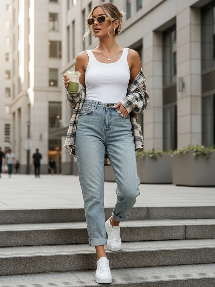 Střih se dobře hodí k ležérním, městským a neformálním outfitům: dobře vypadají s vypasovaným topem, tričkem nebo košilí a v chladnějších dnech s kardiganem nebo bundou. Rovná nohavice usnadňuje sladění s obuví - od tenisek po kozačky, a ohrnovací styl umožňuje rychlou změnu vzhledu.