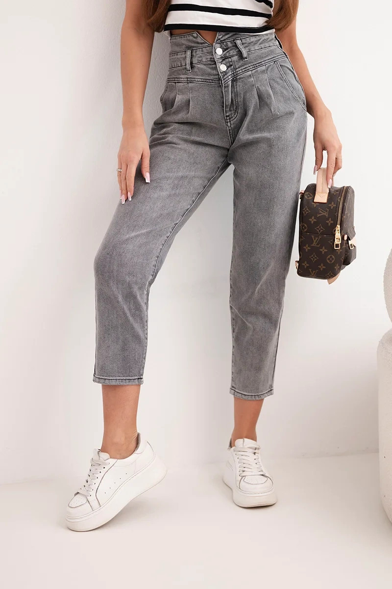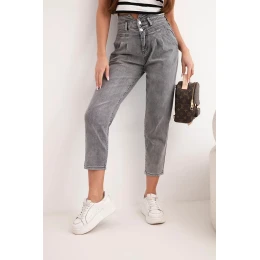 Dámské džíny paperbag s dvojitým zapínáním M.sara grafitové