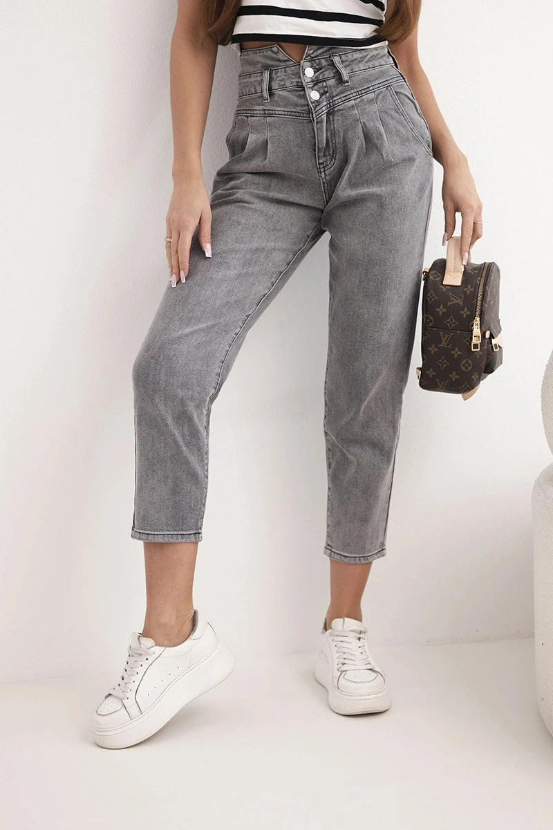 Dámské džíny s dvojitým zapínáním grafitové model 21951843 - K-Fashion