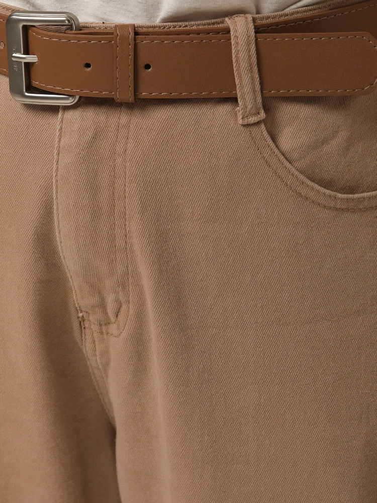 Jeansy damskie z paskiem mom fit UY2880 beżowe