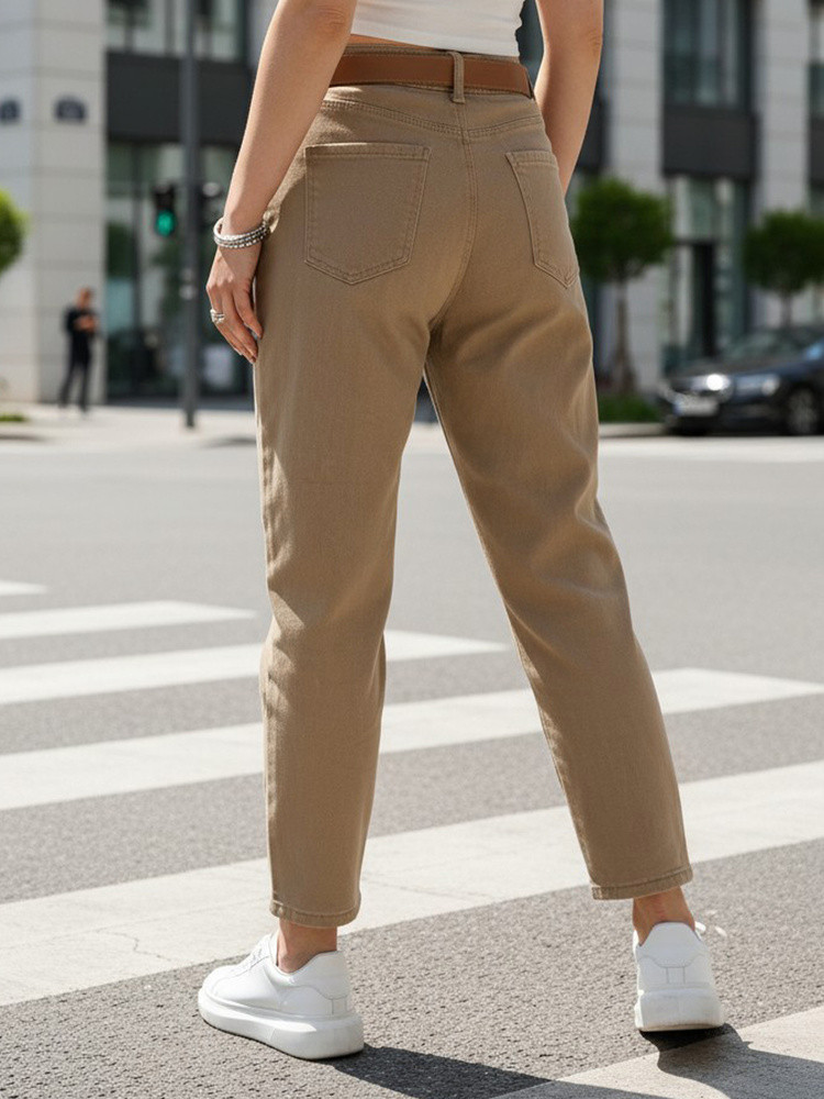 Jeansy damskie z paskiem mom fit UY2878 ciemnobeżowe