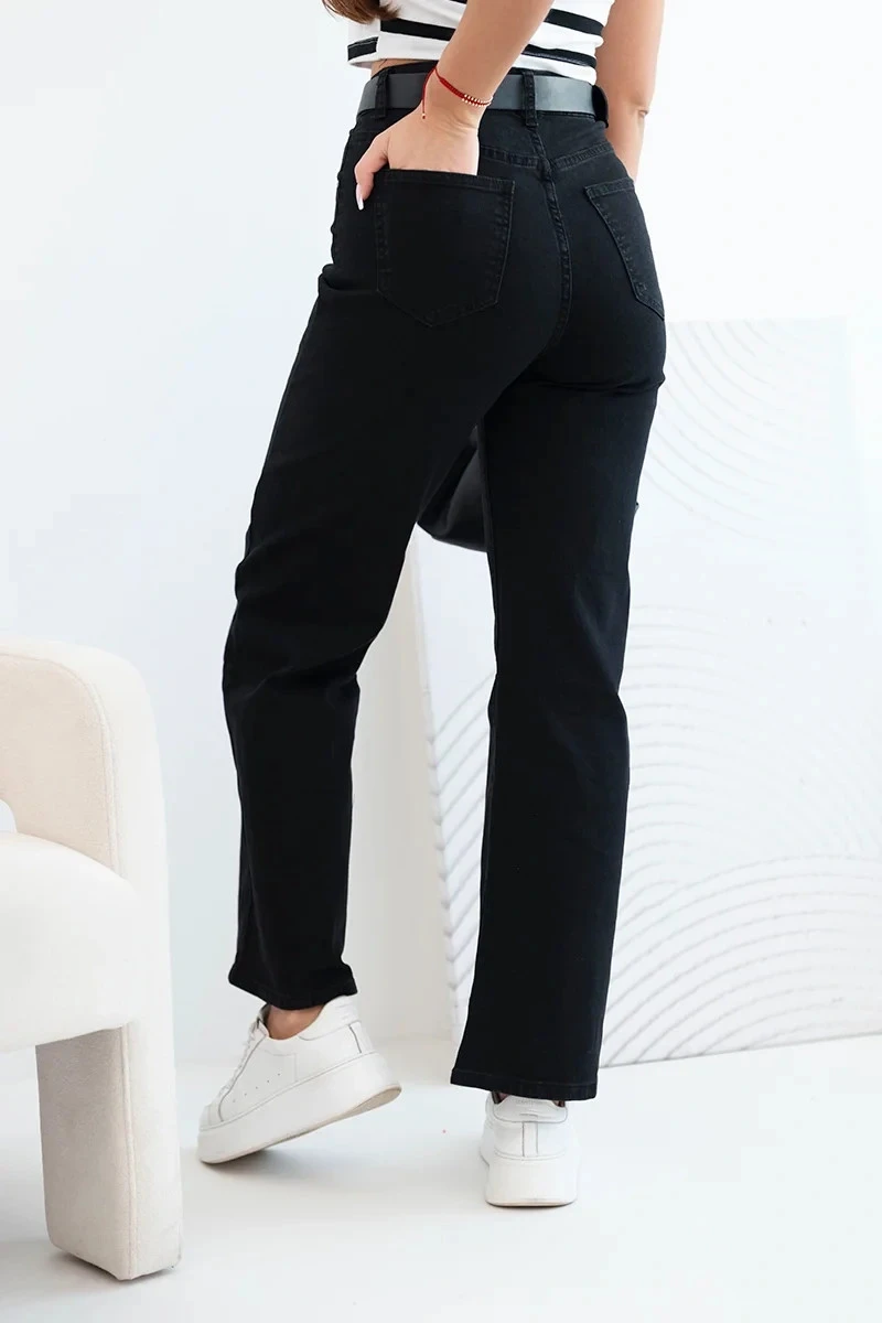 Dámské džíny s rovnými nohavicemi a páskem černé