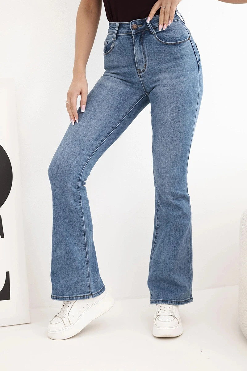 Stylové dámské džíny s rozšířenou nohavicí jsou vynikající volbou pro ženy, které si cení módních střihů a pohodlí do každodenního nošení. Model s vysokým pasem krásně zvýrazňuje pas a opticky prodlužuje nohy, čímž dodává postavě proporce. Lehce přiléhavý vršek a efektně rozšířená nohavice ve stylu flare způsobují, že kalhoty skvěle zapadají do aktuálních módních trendů.