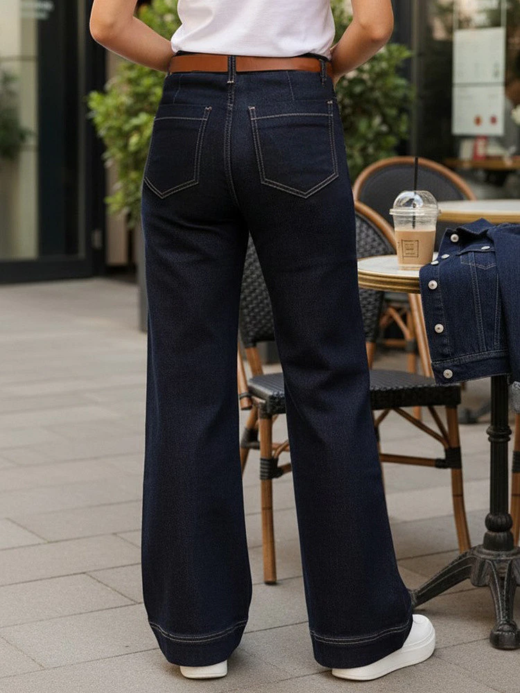 Dámské džíny se širokými nohavicemi jsou moderní interpretací klasického denimu. Rovný střih prodlužující nohy zajišťuje harmonickou siluetu a pohodlí při každodenním nošení. Díky vyššímu střihu a minimalistickému designu model dokonale zapadá do současných trendů městské módy. Univerzální střih umožňuje kombinovat je s ležérními i elegantnějšími prvky vašeho šatníku.