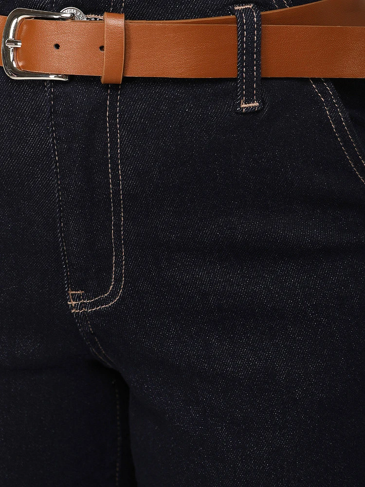 Dámské džíny s širokou nohavicí a páskem tmavě modré FashionStreet UY2926
