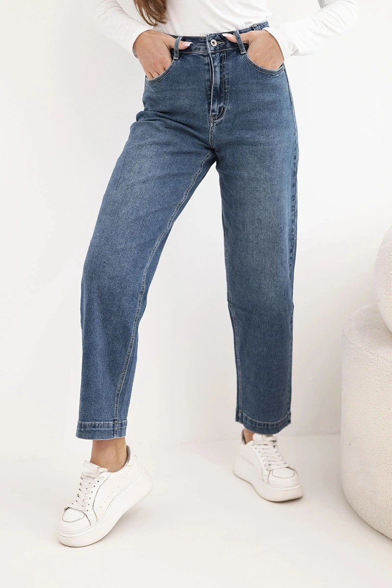 Tyto dámské džíny jsou ideální kombinací pohodlí a módního střihu. Model s vysokým pasem a širokou nohavicí je skvělou volbou pro ženy, které ocení styl a komfort na každodenní nošení. Klasický tmavý denim opticky zeštíhluje siluetu, a rovný střih zaručuje volnost pohybu a nadčasový vzhled.