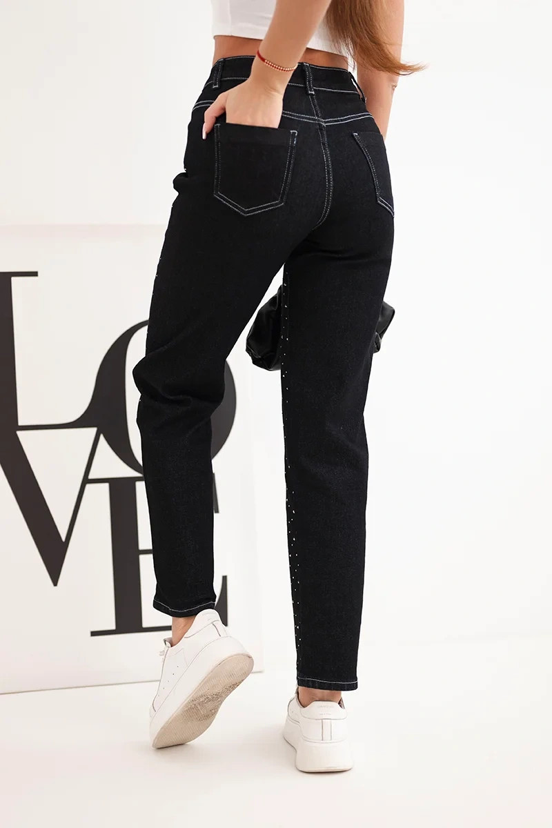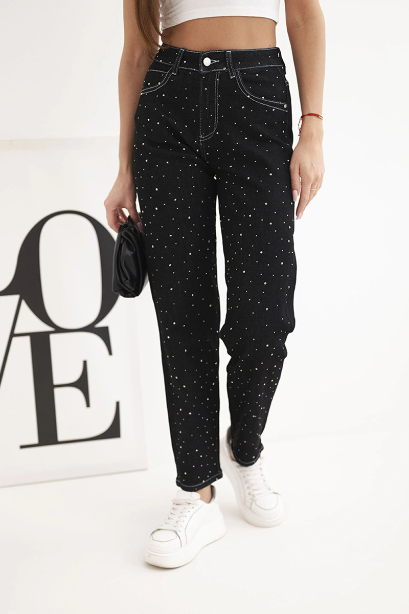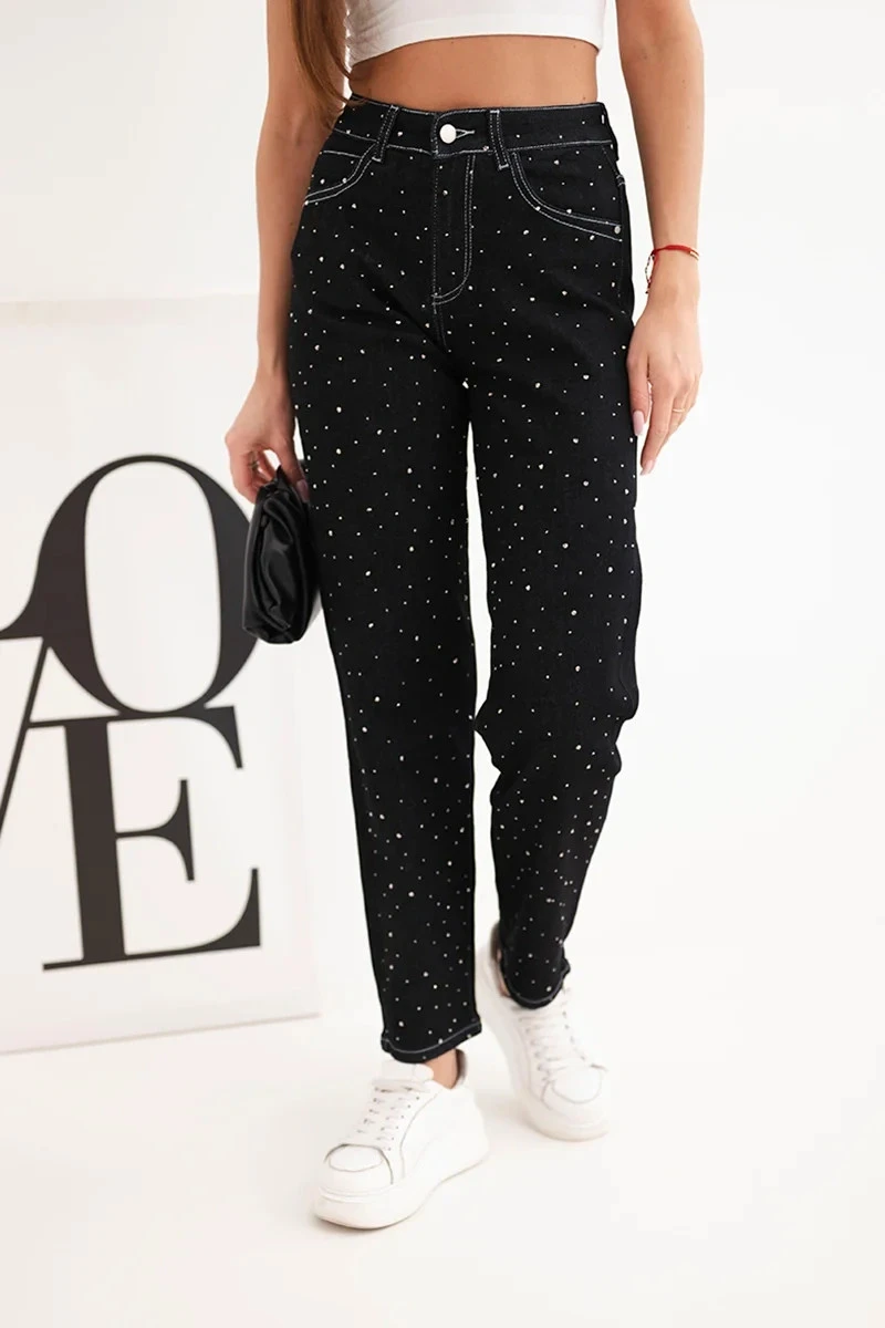 3. Dámské džíny s vysokým pasem a ozdobami černé