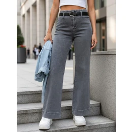 Dámské džíny s vysokým pasem a širokými nohavicemi šedé FashionStreet UY2908