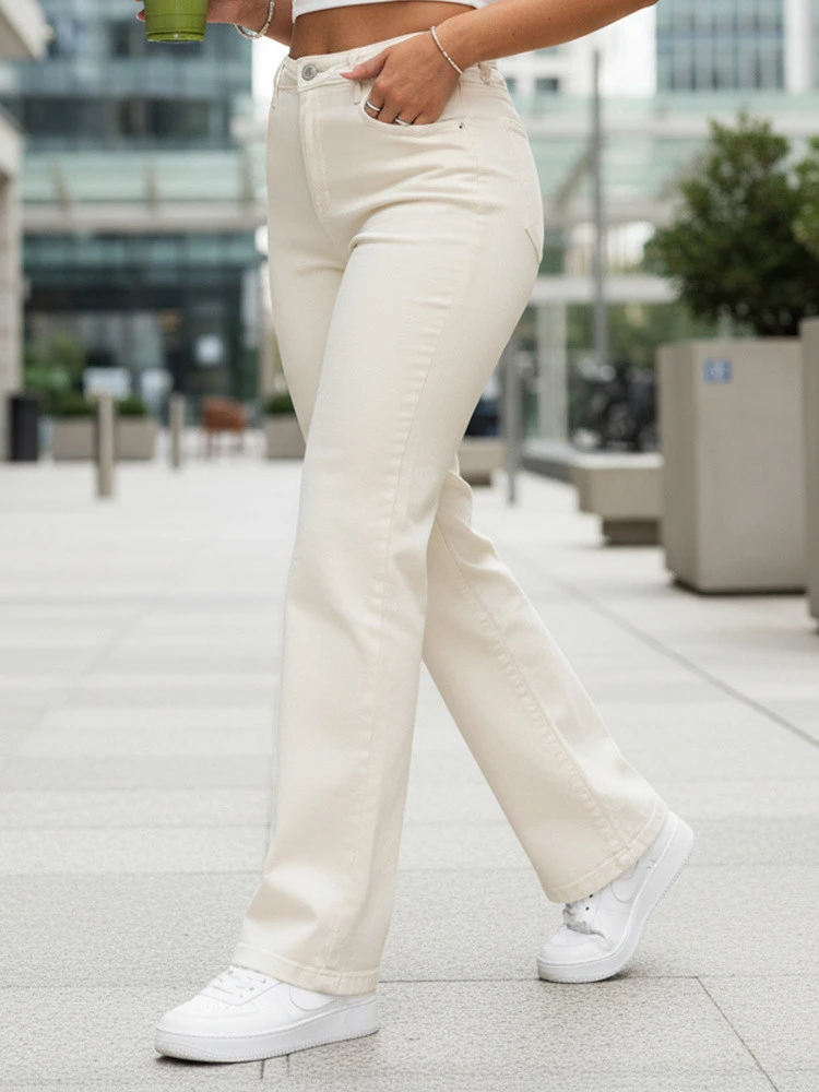 Dámské džíny s vysokým pasem ecru FashionStreet UY2912