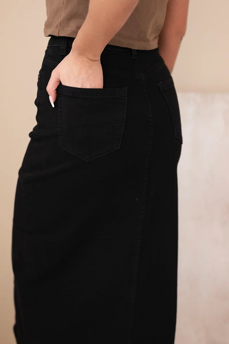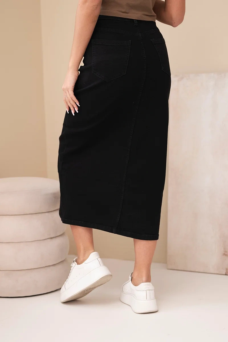 Tento dámský jeansová sukně s vysokým pasem je stylovou nabídkou pro ženy, které si cení klasických střihů a pohodlí na každodenní nošení. Midi střih krásně modeluje siluetu, zdůrazňuje pas a boky. Tmavý, jednobarevný denim dodává eleganci a zároveň činí sukni neuvěřitelně univerzální – ideální jak pro casual stylizace, tak i pro více ženské kombinace.