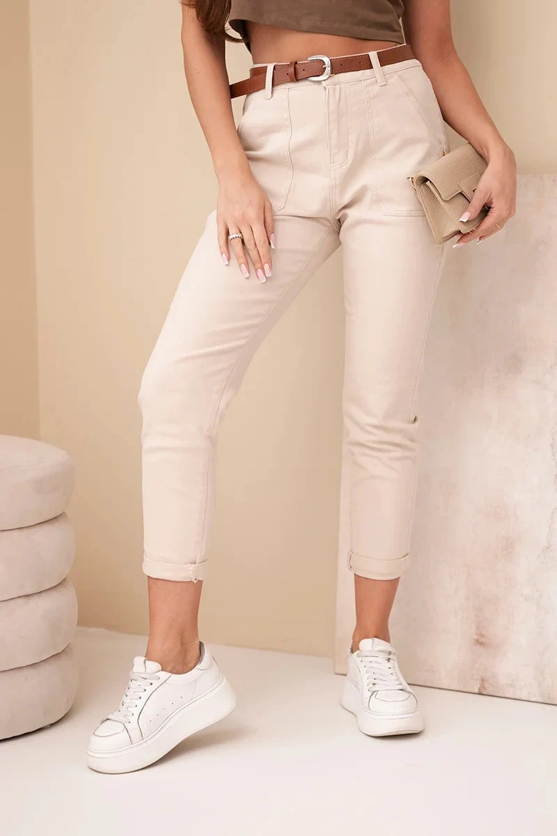 Dámské džíny Skinny s vysokým pasem a páskem model 21998354 béžové - K-Fashion