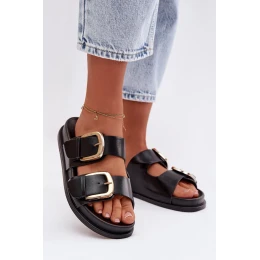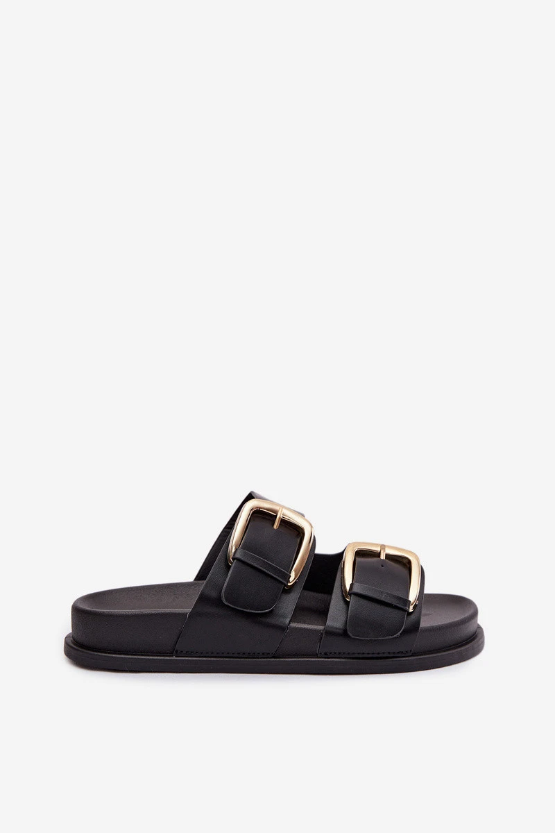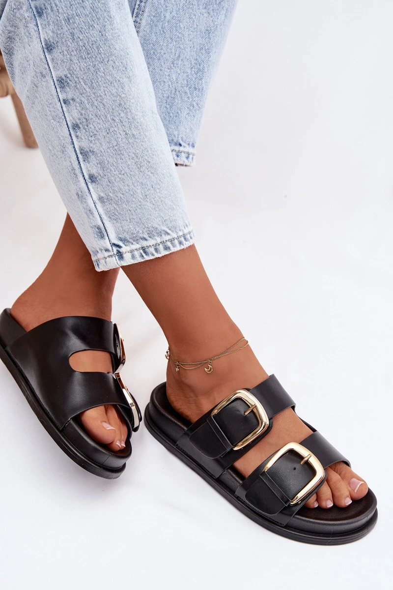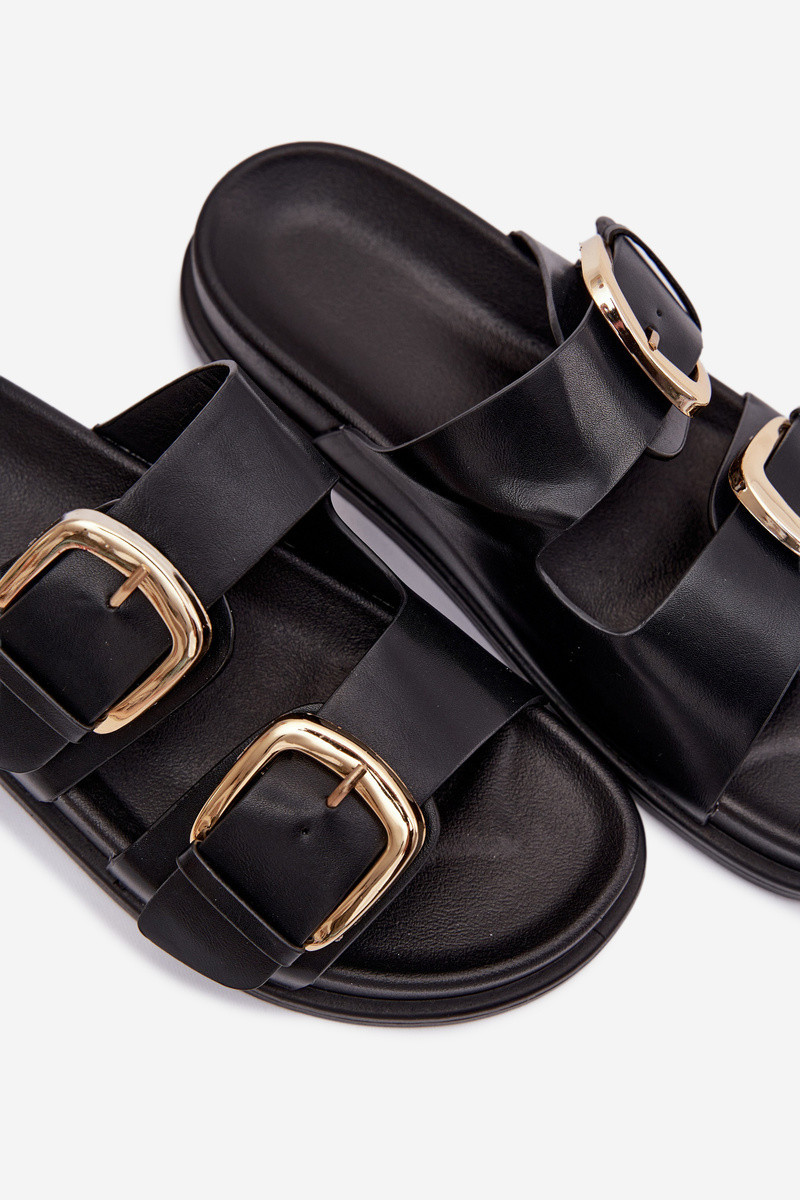 Dámské eko kožené nazouváky s zlatými sponami Černé model 21960848 - Boto