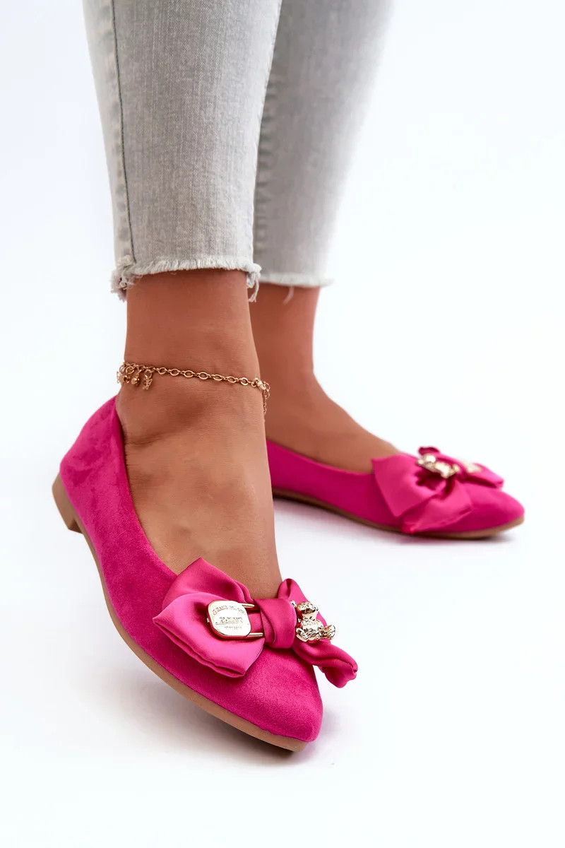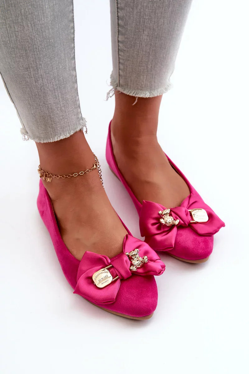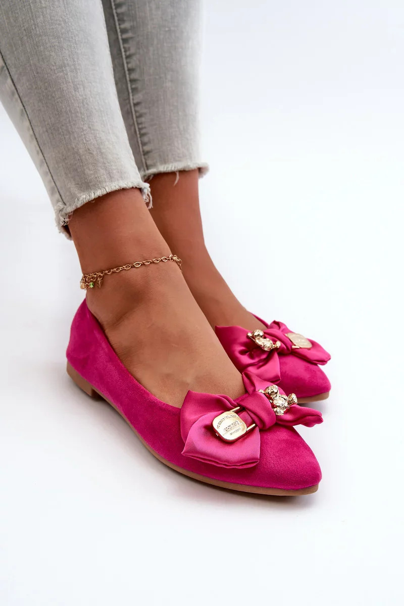 Dámské eko semišové balerínky s mašlí a broží Fuchsia Satris