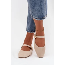 Přidání recenze k Dámské eko semišové baleríny s páskem a zlatou přezkou Adelora – světle béžové