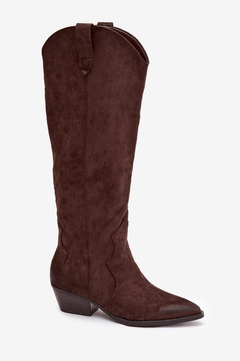 Dámské eko-semišové kovbojky na podpatku Jenaya – čokoládové