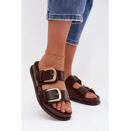 Dámské ekologické kožené pantofle se zlatými sponami Čokoládové model 21960841 - Boto