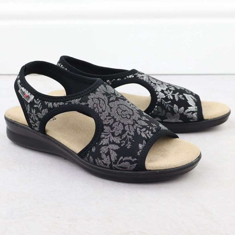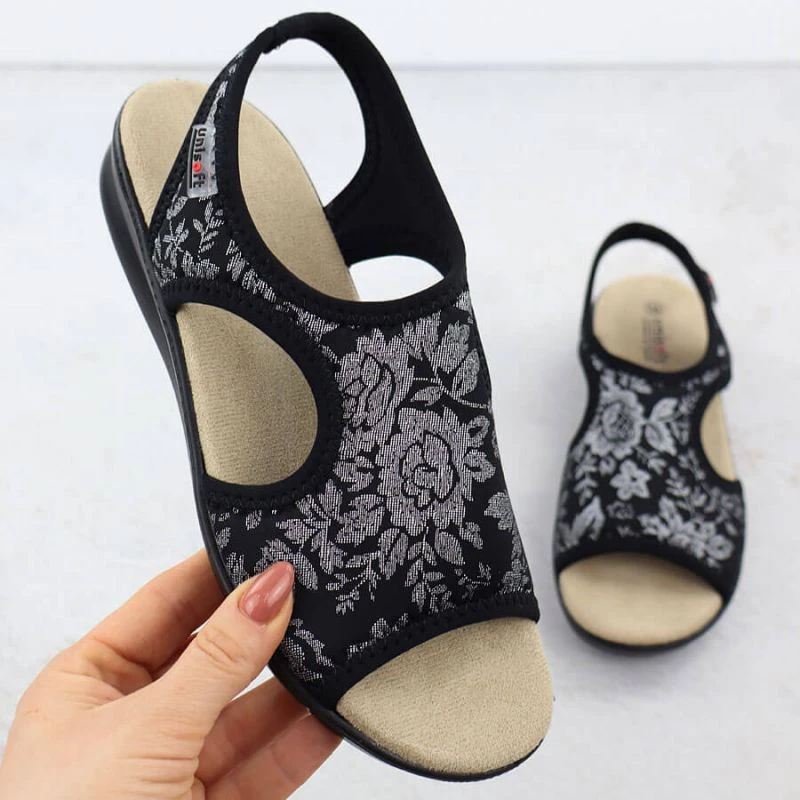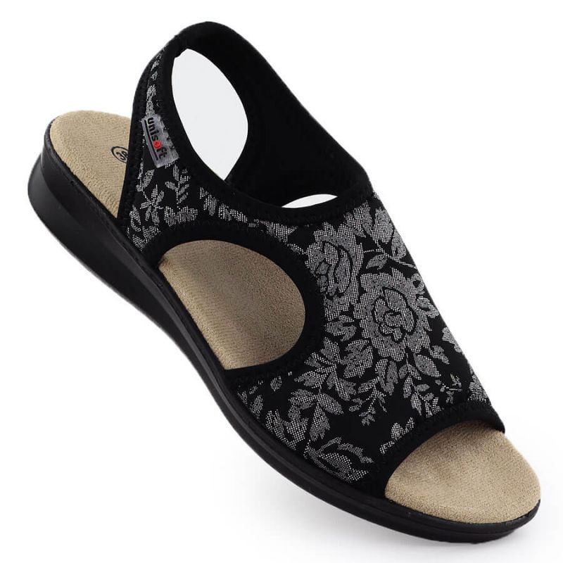 Dámské elastické květinové sandály s vysokým sedem černé Unisoft 7196