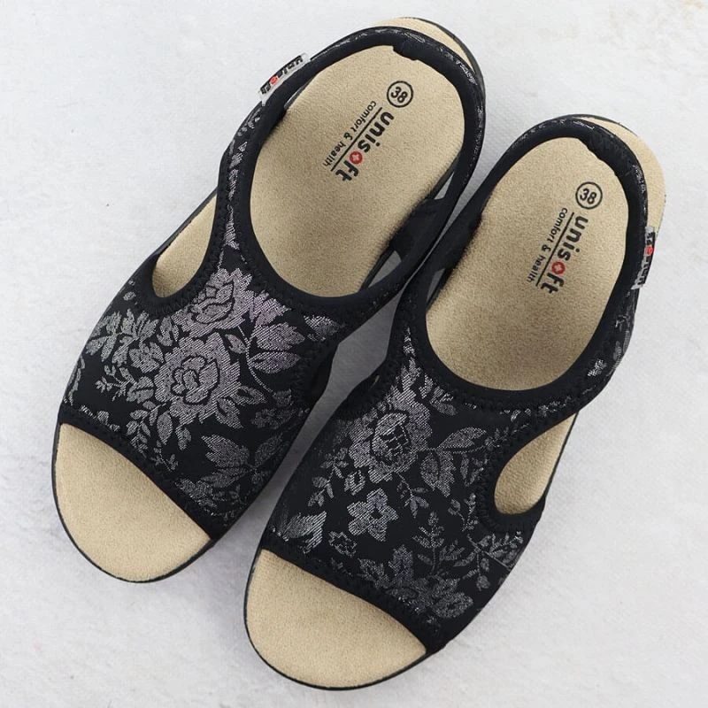 Nejnovější nabídka od společnosti Unisoft je sandál s inovativním systémem COMFORT, který poskytuje komfort a pohodlí díky mimořádně měkké stélce, zatímco flexibilní boky jsou ideální pro širší chodidla s hallux valgus nebo vbočenými palci.