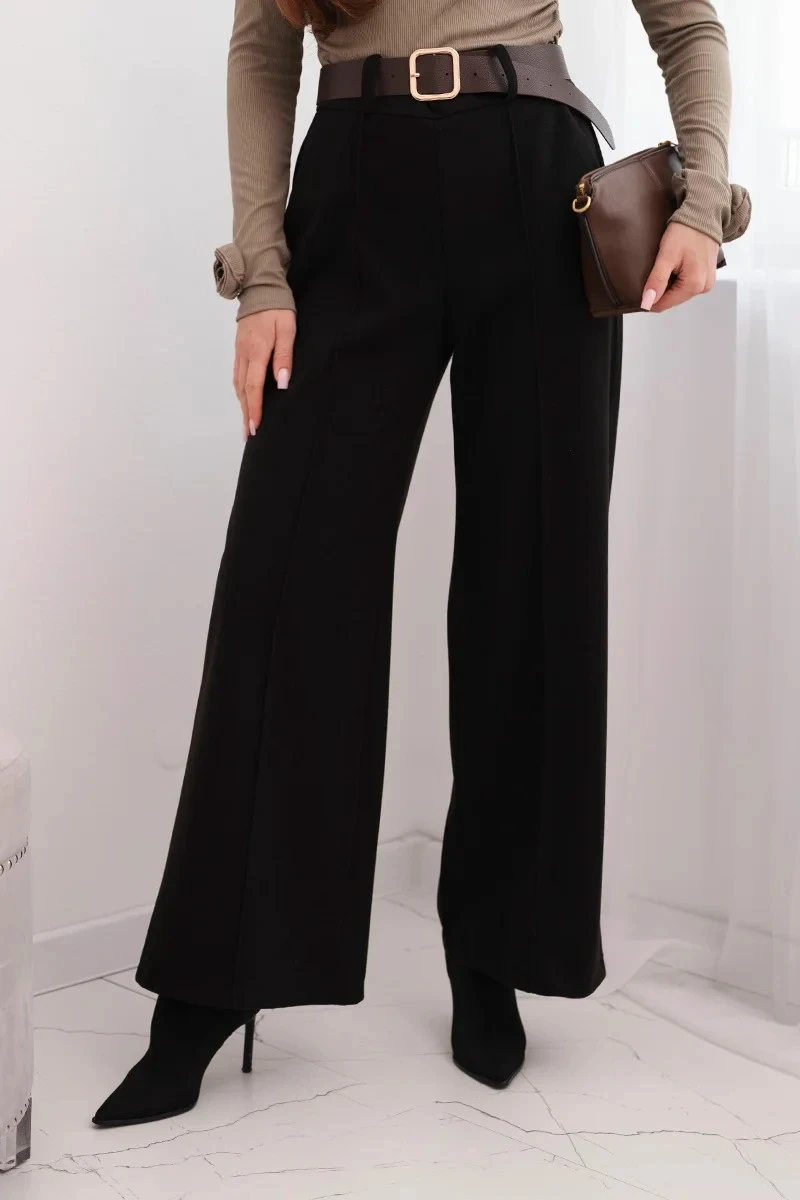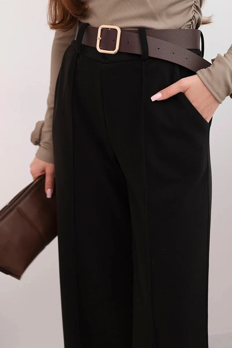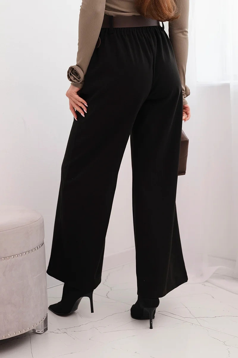 Dámské elegantní kalhoty s páskem a širokou nohavicí černé