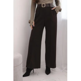 Dámské elegantní kalhoty s páskem a širokou nohavicí hnědé