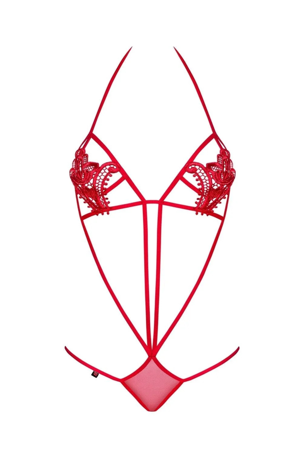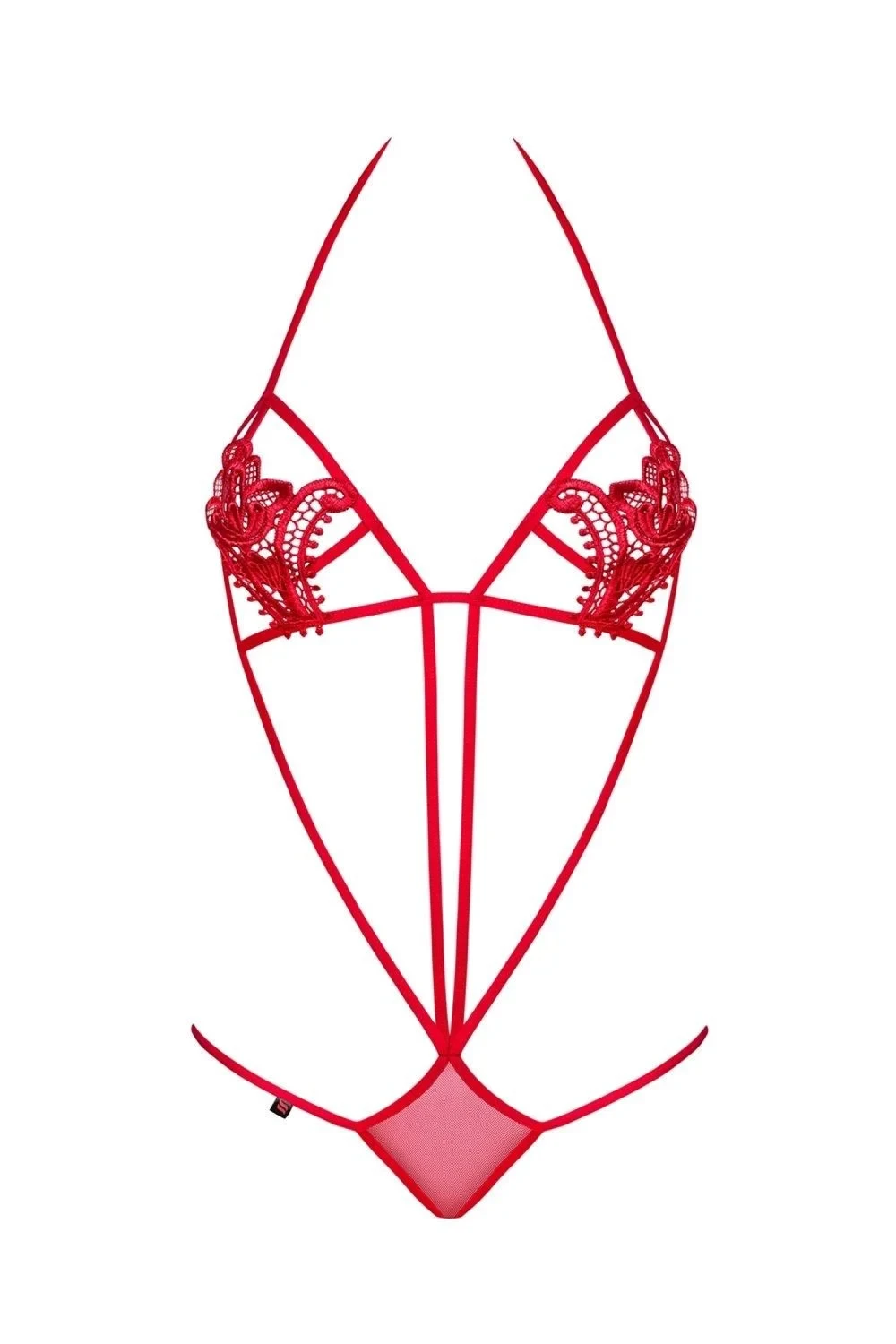 Dámské erotické body Luiza teddy red - OBSESSIVE
