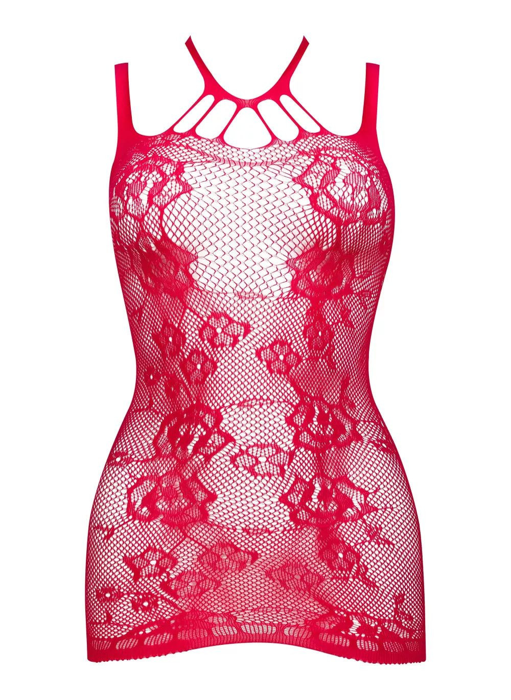 Dámské erotické šaty Anya dress red BEAUTY NIGHT FASHION - černá barva - tenká ramínka - ze síťoviny s malými oky - zdobené velkými květy