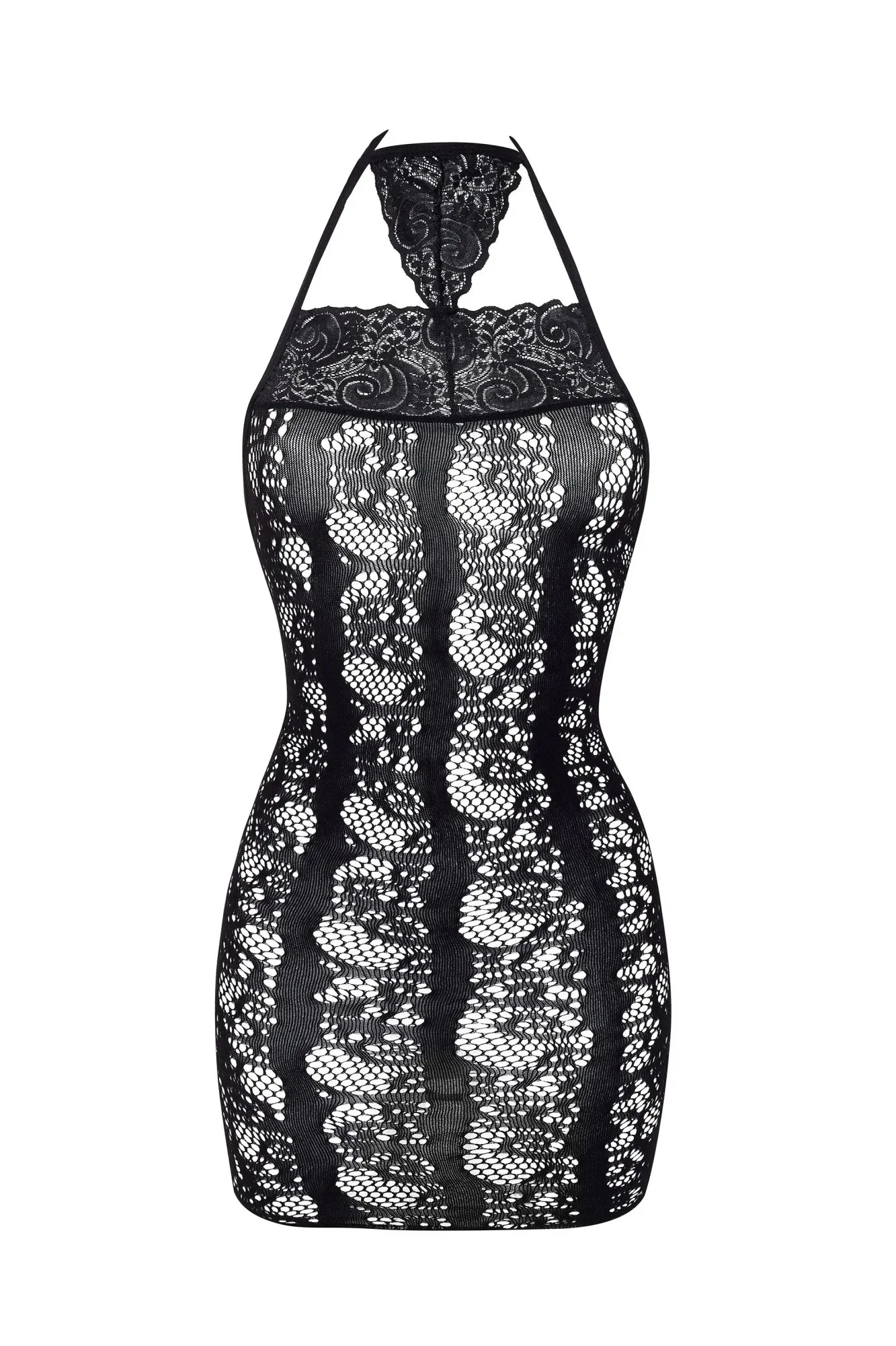 Erotické šaty Elisabeth BEAUTY NIGHT FASHION - černá barva - z transparentní síťoviny - zavazování za krkem - zadní část ze spojených pásků