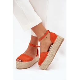 Dámské espadrilky na platformě s pletením oranžové Selise