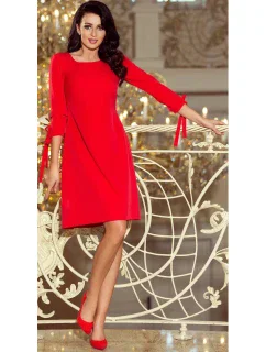 Dámské exkluzivní šaty s dvojitou sukénkou a krajkovým dekoltem červené - Červená - Numoco