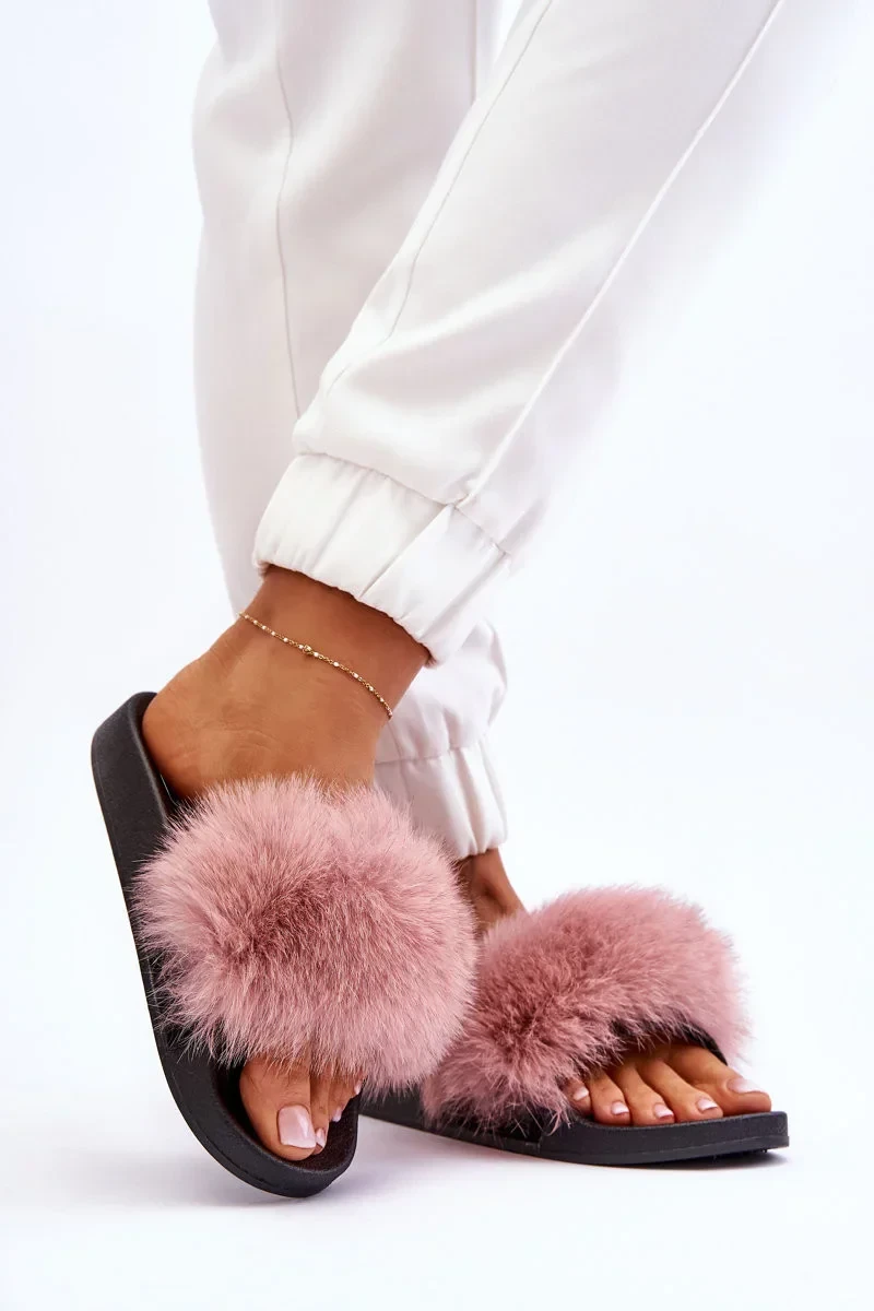 Dámské gumové pantofle s kožešinou Růžove Lucrece