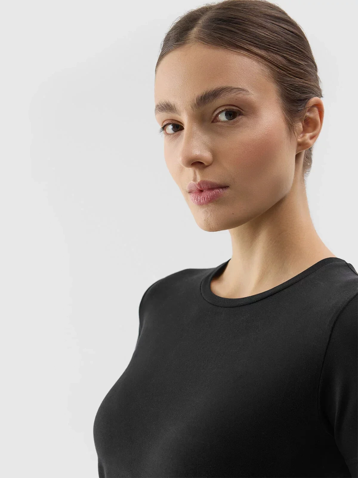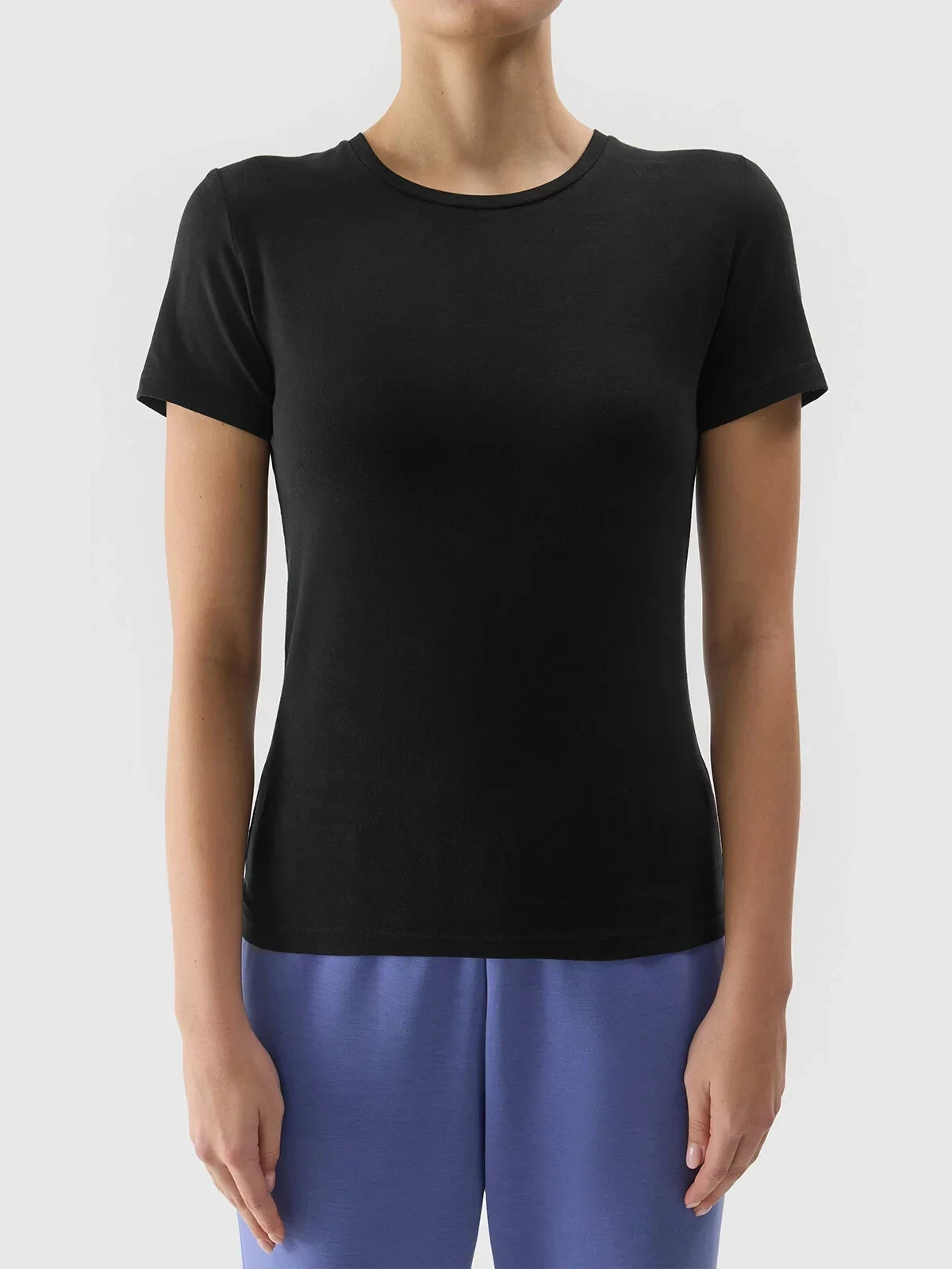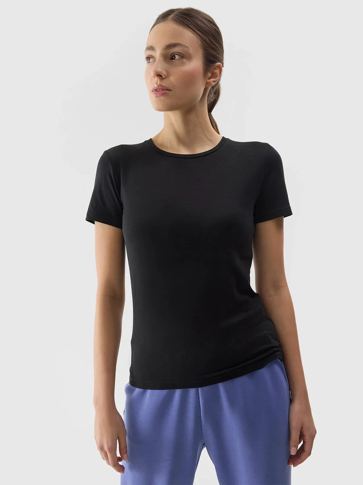 Dámské hladké tričko s krátkým rukávem je vyrobeno z 94% lyocellu, který je měkký na dotek a prodyšný, takže bude ideální na léto. Jeho vlákna jsou pružná a velmi odolná. Kromě toho je materiál odolnější proti pomačkání.