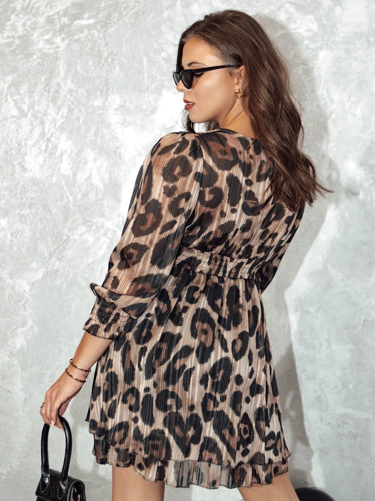 Šaty s leopardím vzorem jsou ideální volbou pro ženy, které ocení styl a trochu divokého charakteru. Lehký, vzdušný materiál, vypasovaný pas a rukávy zakončené jemnou gumičkou vytvářejí jemnou a ženskou kombinaci. Hodí se jak na večerní vycházky, tak na běžné denní stylizace. Jsou ideální volbou pro vyniknutí a dodání sebevědomí.