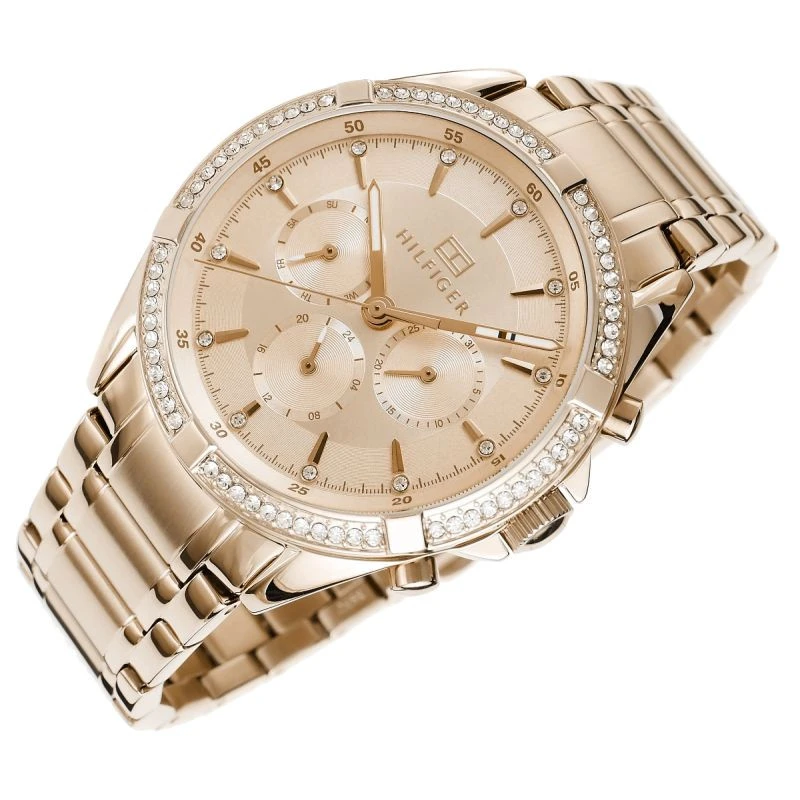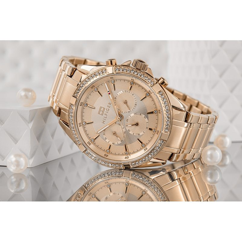Model Tommy Hilfiger Kenzie 1782558 to zegarek stworzony dla kobiety, która wie, jak przekształcić każdą chwilę w małe dzieło sztuki. To wybór dla tej, która nie boi się blasku, ale wybiera go z wyrafinowaniem i ceni luksusowe dodatki subtelnie wplecione w codzienność.