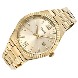 Zegarek Fossil Scarlette to nie tylko czasomierz – to biżuteria, która pulsuje rytmem Twojego dnia. Złota bransoleta oplata nadgarstek niczym luksusowa tkanina, łącząc klasyczną elegancję z nutą nowoczesnego stylu. Złota tarcza w wykończeniu sunray delikatnie igra ze światłem, niczym promienie słońca odbijające się od tafli wody. Każdy ruch nadgarstka wydobywa jej subtelny blask, podkreślając akcenty na tarczy rozświetlają ją i przywodząc na myśl migotliwe refleksy drogocennej biżuterii. Datownik, dyskretnie wkomponowany w design, sprawia, że ten zegarek jest nie tylko piękny, ale też praktyczny.