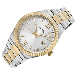 Zegarek Fossil Scarlette to nie tylko czasomierz – to biżuteria, która pulsuje rytmem Twojego dnia. Srebrno-złota bransoleta oplata nadgarstek niczym luksusowa tkanina, łącząc klasyczną elegancję z nutą nowoczesnego stylu. Srebrna tarcza w wykończeniu sunray delikatnie igra ze światłem, niczym promienie słońca odbijające się od tafli wody. Każdy ruch nadgarstka wydobywa jej subtelny blask, podkreślając akcenty na tarczy rozświetlają ją i przywodząc na myśl migotliwe refleksy drogocennej biżuterii. Datownik, dyskretnie wkomponowany w design, sprawia, że ten zegarek jest nie tylko piękny, ale też praktyczny.