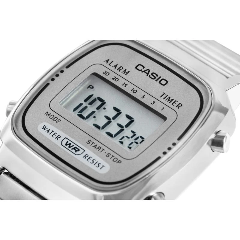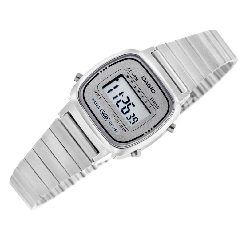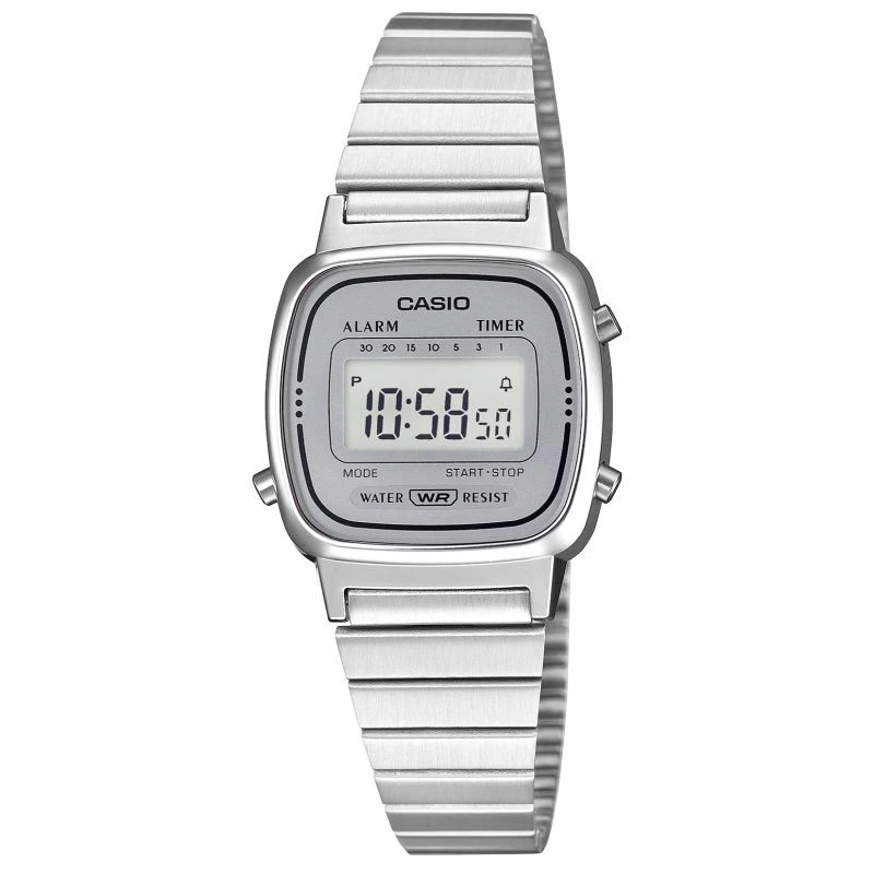 Digitální model CASIO LA670WA-7DF je ideální volbou pro ženy, které milují módu, ale nehoní se za ní slepě - vybírají si to, co vyhovuje jejich vlastnímu rytmu a stylu. Štíhlá zaoblená obálka obklopená kovovým náramkem evokuje atmosféru 70. let a dodá každému vzhledu nádech retro šarmu a nonšalantní elegance.
