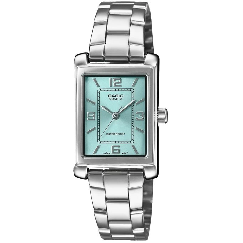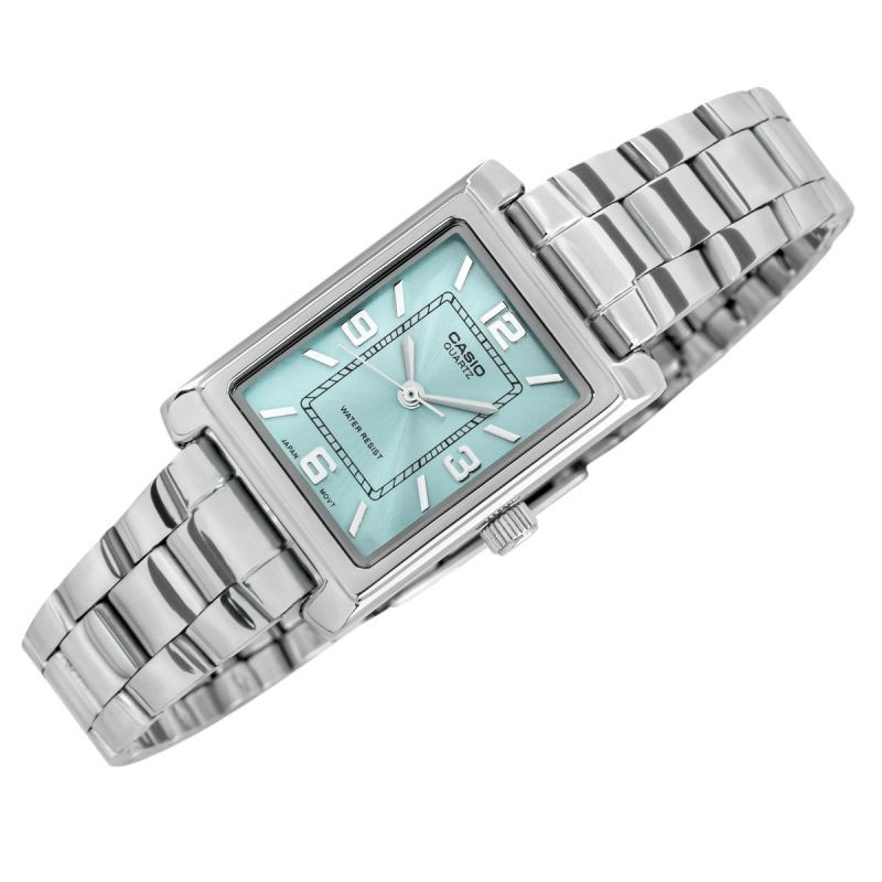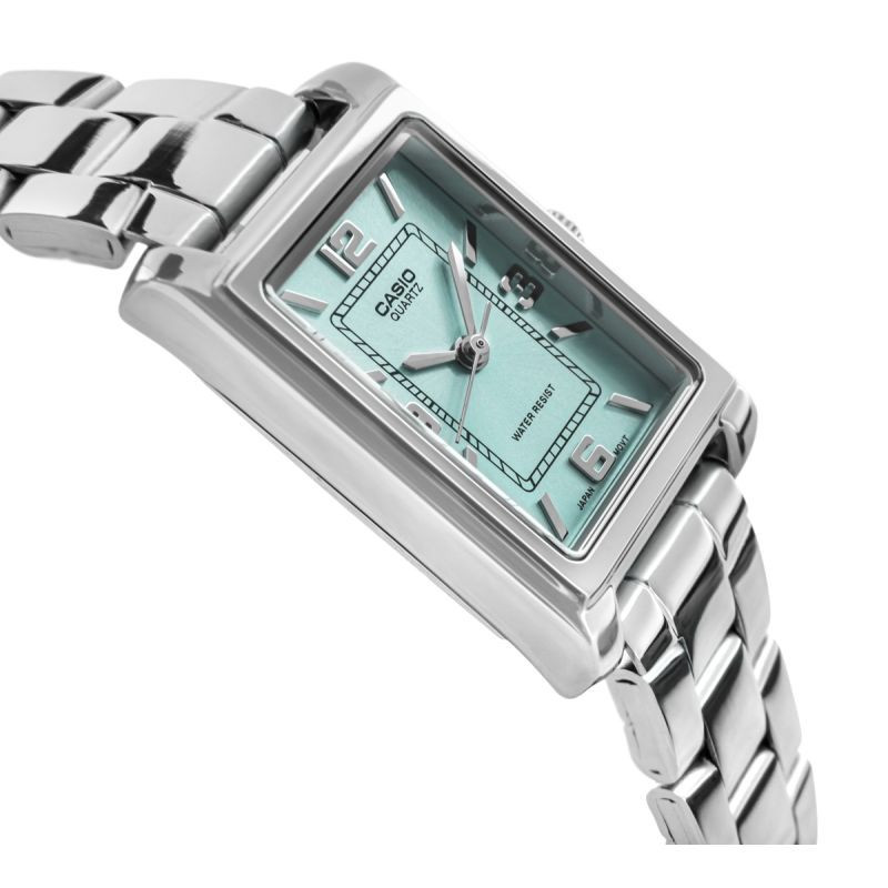 Tento model hodinek Casio je skutečným skvostem pro ženy, které ocení eleganci a decentní styl. Obdélníkový ciferník stříbrné barvy jim dodává klasický a zároveň moderní vzhled. Tyrkysový ciferník je poutavým prvkem - je svěží, jemný a zároveň jedinečný, dodává hodinkám charakter a originalitu. Stříbrné ručičky a stylové hodinové značky usnadňují čtení času a celkový vzhled je mimořádně harmonický. Náramek z nerezové oceli dodává celkovému vzhledu punc elegance a zároveň zajišťuje celodenní pohodlí.