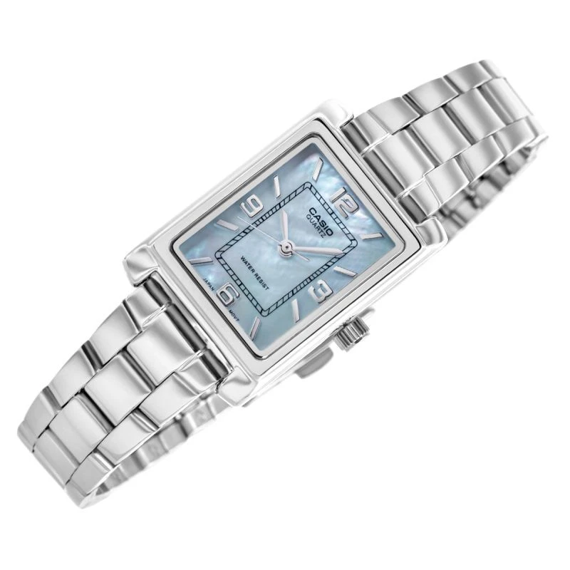 Někdy ty nejjednodušší věci působí nejsilnějším dojmem. dámské hodinky CASIO v elegantním obdélníkovém tvaru jsou ztělesněním jemnosti - vytvořeny pro ženy, které oceňují klasiku ve svěžím, decentním provedení . přírodní perleťový ciferník v chladném odstínu modré se na světle jemně třpytí a vytváří efekt hladiny klidné vody. každý kus je jedinečný - příroda nevytváří dva stejné vzory. Je to krása, která přitahuje pohled svou lehkostí, nikoliv křiklavostí. štíhlé obdélníkové pouzdro a lesklý stříbrný náramek dodávají hodinkám nádech elegance a sofistikovanosti, zatímco snadno čitelné indexy a číslice činí hodinky praktickými pro každodenní použití. díky odolnosti proti stříkající vodě je můžete mít vždy u sebe - i když vás život zaskočí.