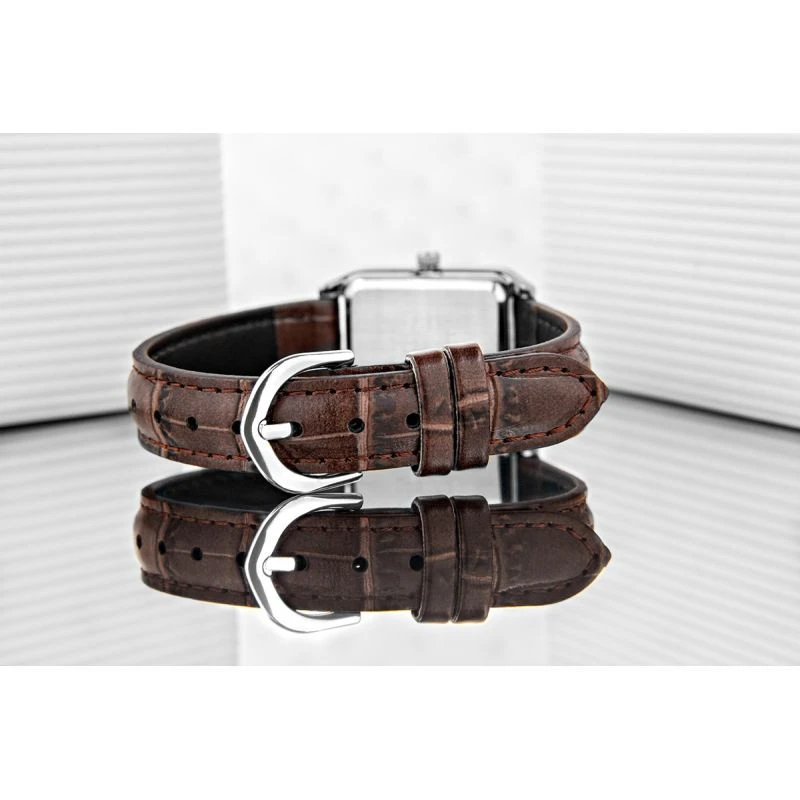 Jemné kartáčování zlatého ciferníku mu dodává elegantní záři, která nádherně odráží světlo a vytváří efekt hloubky. Každý prvek byl propracován s ohledem na diskrétní luxus, od tenkých černých indexů až po jemně se zužující ručičky, které odměřují čas s mimořádnou přesností. Geometrické pouzdro z ušlechtilé oceli dodává hodinkám moderní nádech a jeho mírně zaoblené hrany působí lehce a harmonicky. Nejsou to jen hodinky, je to šperk, který podtrhne váš styl - jemný, ale sebevědomý, minimalistický, ale jedinečný. Reliéfní textura řemínku, inspirovaná přírodní krokodýlí kůží, dodává rafinovaný nádech a jemný lesk umocňuje jeho luxusní vzhled.