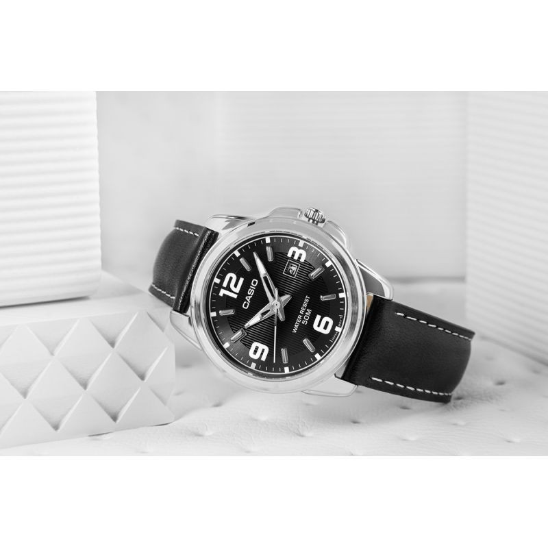Dámský model hodinek CASIO, který je dokonalou kombinací klasiky a funkčnosti. Díky vodotěsnosti do 50 metrů jsou ideální pro každodenní nošení - déšť, stříkající voda ani mytí rukou pro ně nejsou problémem. Velké, dobře čitelné arabské číslice zajišťují pohodlné čtení času a datumovka umístěná ve výšce 3 hodin umožňuje mít vždy přehled o aktuálním dni. Díky jednoduchému, intuitivnímu designu se velmi snadno používají a řemínek z pravé kůže jim dodává eleganci a pohodlí při nošení.