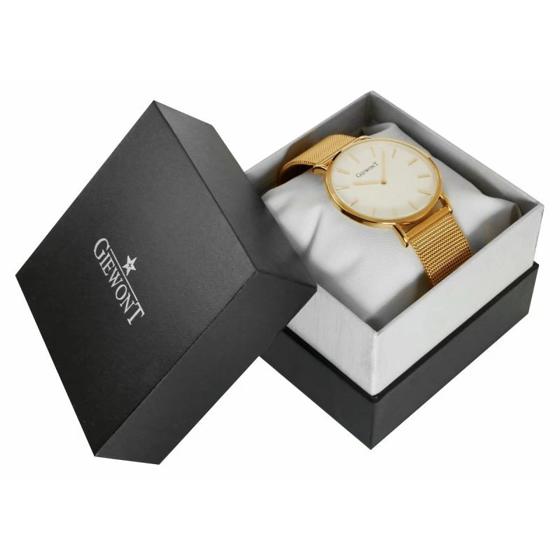 Komfortní ocelový náramek Mesh je vynikajícím doplňkem těchto hodinek. Typ náramku je zárukou pevnosti a pohodlí při každodenním používání. Pohodlí doplňuje vhodná kvalita oceli, která se pohodlně přizpůsobí dámskému zápěstí. Zapínání je signováno logem značky Giewont, což zvyšuje prestiž hodinek a zajišťuje jedinečnost mezi ostatními značkami hodinek.