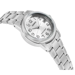 Model CASIO LTP-V002D to zegarek dla kobiet ceniących klasyczną formę i niezawodność. Jego srebrna tarcza z wyraźnymi arabskimi cyframi i subtelnymi wskazówkami zapewnia doskonałą czytelność, a kompaktowa, stalowa koperta z bransoletą tworzy elegancki, uniwersalny look – idealny zarówno do biura, jak i na co dzień. Wodoodporność na poziomie codziennego użytkowania i praktyczny datownik czynią go nie tylko pięknym, ale i praktycznym towarzyszem każdego dnia. Wybierz CASIO LTP-V002D i postaw na dyskretną elegancję, która nigdy nie wychodzi z mody.