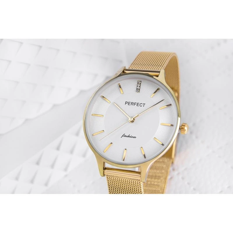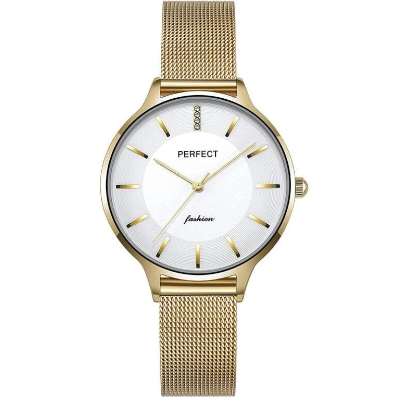 Wykonana z wysokiej jakości stali, idealnie dopasowuje się do damskiego nadgarstka, zapewniając wygodę noszenia przez cały dzień. Jej elegancka struktura i zapięcie ozdobione logiem marki Perfect dodają zegarkowi wyjątkowego stylu i wyróżniają go na tle innych.