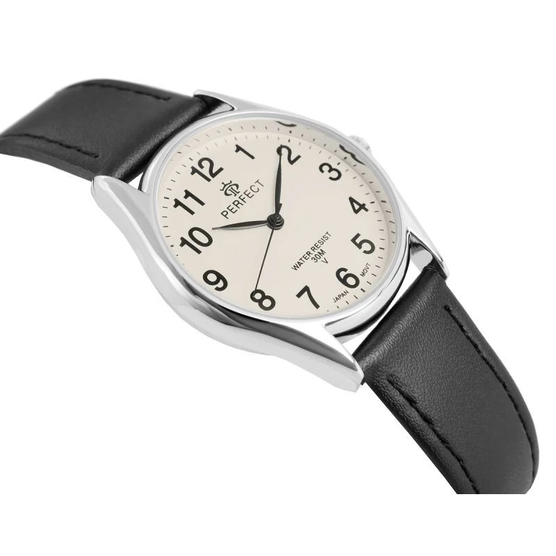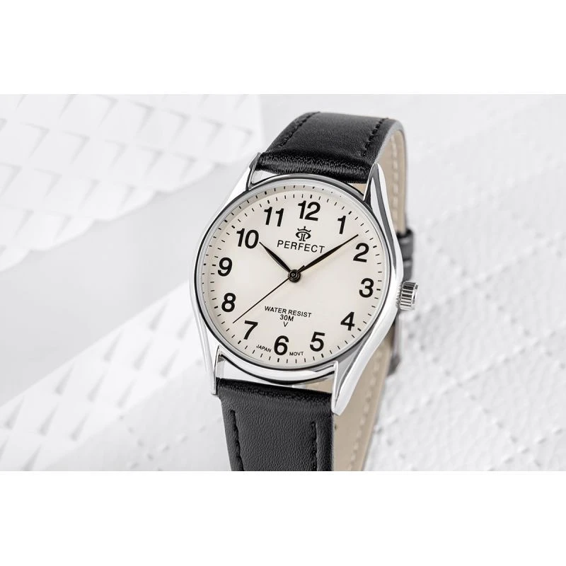 Skórzany pasek tego zegarka to kwintesencja klasy i wygody. Wykonany z najwyższej jakości materiału, komfortowo dopasowuje się do nadgarstka, oferując nie tylko trwałość, ale też elegancki wygląd. Jego miękkość zapewnia komfort noszenia na co dzień, a perfekcyjne wykończenie podkreśla charakterystyczny styl marki Perfect.