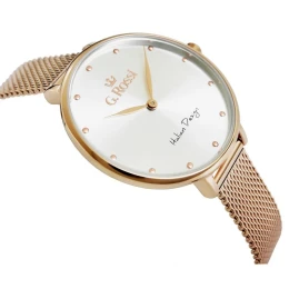 G.Rossi to marka, która z zegarmistrzowską precyzją łączy elegancję z finezją współczesnych trendów, tworząc czasomierze pełne charakteru i stylu. Zegarki G.Rossi kierowane do osób, które pragną czegoś więcej niż tylko punktualności, zegarki te odpowiadają na potrzeby poszukiwaczy piękna, indywidualistów i miłośników detali, które potrafią mówić same za siebie. Kolekcje G.Rossi obejmują pełen wachlarz stylów – od subtelnych, klasycznych modeli, po awangardowe zegarki ozdobione iskrzącymi kryształkami, które błyszczą niczym refleksy słońca na gładkiej tafli jeziora. Ich eleganckie bransolety ze stali szlachetnej, paski z naturalnej skóry i przewiewne meshowe sploty oplatają nadgarstek jak modowa deklaracja niezależności. Materiały, z jakich są wykonane, nie tylko gwarantują trwałość, ale także delikatnie przypominają o luksusie i subtelnej przyjemności noszenia dodatków o niepowtarzalnym stylu.