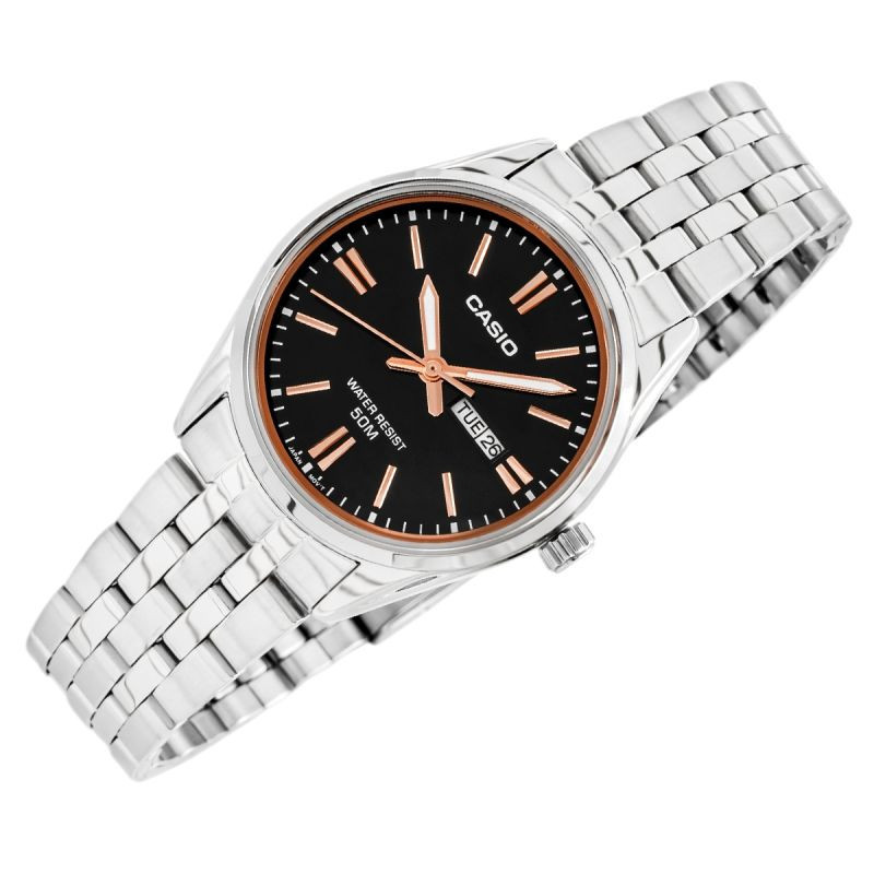 Damski zegarek CASIO LTP-1335D to harmonijne połączenie subtelności i nowoczesnej elegancji. Srebrna bransoleta o lekkim, biżuteryjnym połysku delikatnie otula nadgarstek, dodając blasku każdemu ruchowi. Prosta, przejrzysta tarcza emanuje spokojem – tak jak lubisz, gdy wszystko ma swoje miejsce i rytm. Dyskretna funkcja datownika z dniem tygodnia troszczy się o Twoją codzienność, a wodoodporność do 50 (5 BAR) metrów sprawia, że możesz mieć go zawsze przy sobie – niezależnie od planów i pogody. To zegarek dla kobiety, która ceni jakość, lekkość i świadome wybory.Delikatny, ale pełen charakteru. Elegancki, ale nienachalny. Będzie doskonałym dopełnieniem białej koszuli, zwiewnej sukienki i ulubionych jeansów z wysokim stanem – bo to Ty nadajesz ton swojemu stylowi.