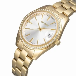 Jej gładka, delikatnie połyskująca powierzchnia harmonijnie oplata nadgarstek, zapewniając komfort noszenia przez cały dzień. Dziękiprecyzyjnemu wyprofilowaniu idealnie dopasowuje się do kobiecej dłoni, subtelnie podkreślając smukłość nadgarstka i dodając każdej stylizacji elegancji. Stal nierdzewna łączy w sobie zarówno wytrzymałość, jak i lekkość, co sprawia, że zegarek nosi się z wyjątkową wygodą. Design bransolety idealnie balansuje pomiędzy luksusem a codzienną prostotą, sprawiając, że ten model zegarka jest idealny zarówno na wieczorne wyjścia, jak i na co dzień. Całość dopełnia logo Paul Lorens na zapięciu bransolety.