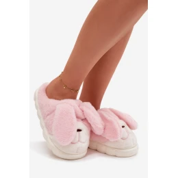 Dámské huňaté pantofle s motivem králíčka – růžové Faylen