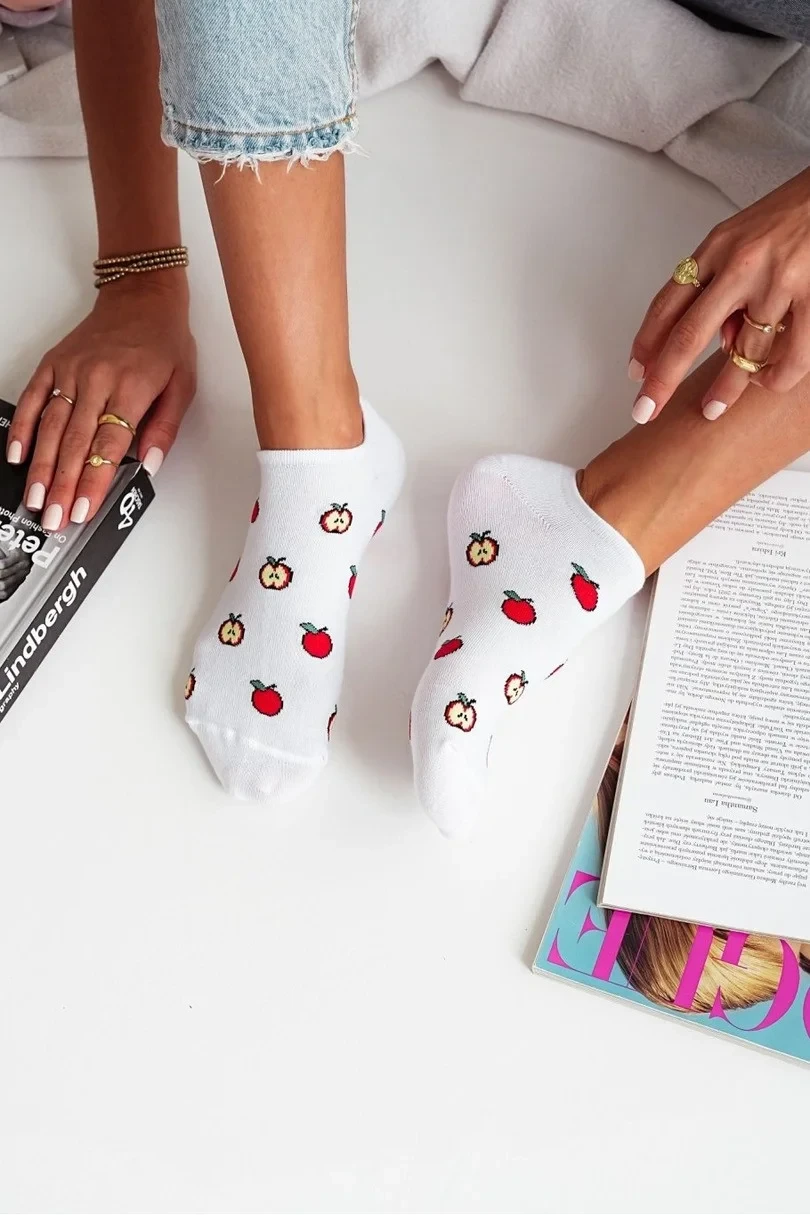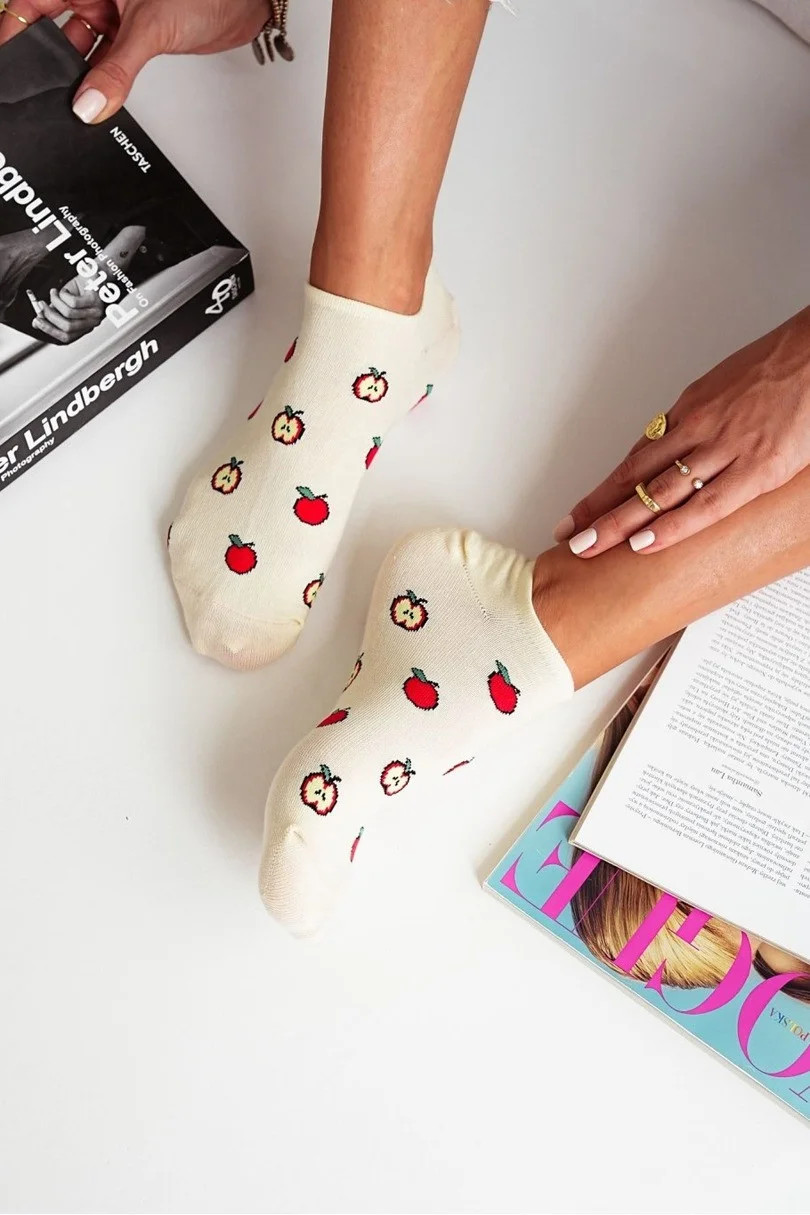 Dámské ponožky s jablkem dodají vašemu šatníku trochu svěžesti! Tyto roztomilé bavlněné ponožky kombinují pohodlí a styl s jemným vzorem jablka pro jedinečný nádech.Díky vzdušnému a pružnému materiálu se dokonale přizpůsobí vašim nohám a zajistí celodenní pohodlí.Perfektní pro každodenní styling – skvěle se hodí k teniskámóm, teniskám a běžné obuvi.