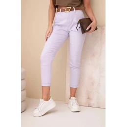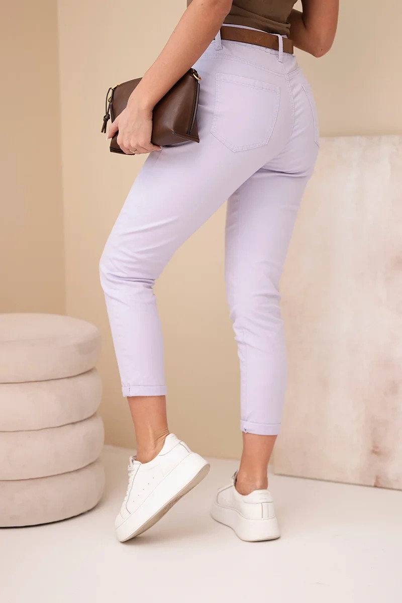 Dámské jarní boyfriend kalhoty s vysokým pasem a pásem M.Sara fialové
